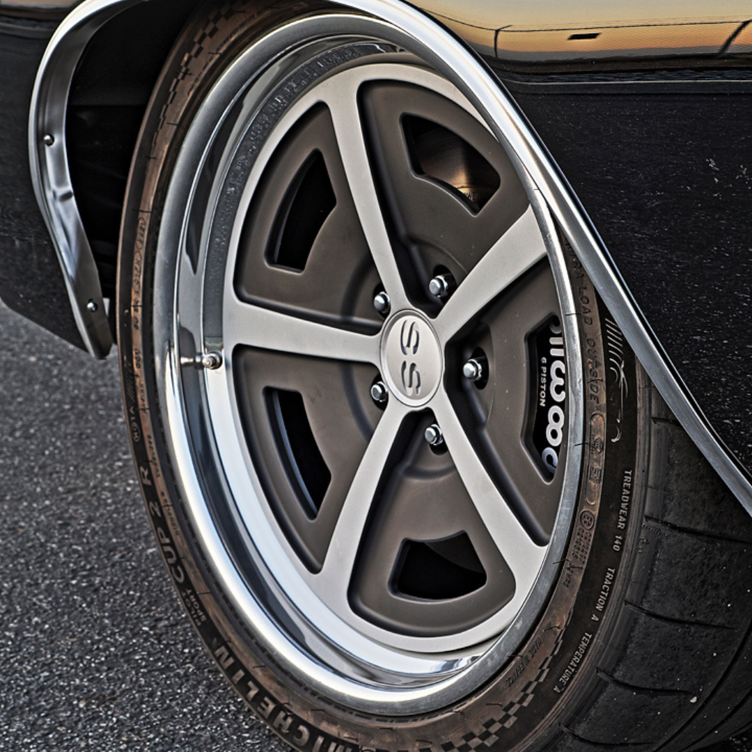 Ironworks Speed and Kustom engineered the Legacy Series braking system to deliver race-proven performance with street-ready reliability. At all four corners, Wilwood 6-piston calipers clamp down on massive 14” two-piece drilled and slotted rotors, providing superior stopping power. Manual transmission cars feature manual disc brakes, while automatic models offer optional power brakes for enhanced control.
