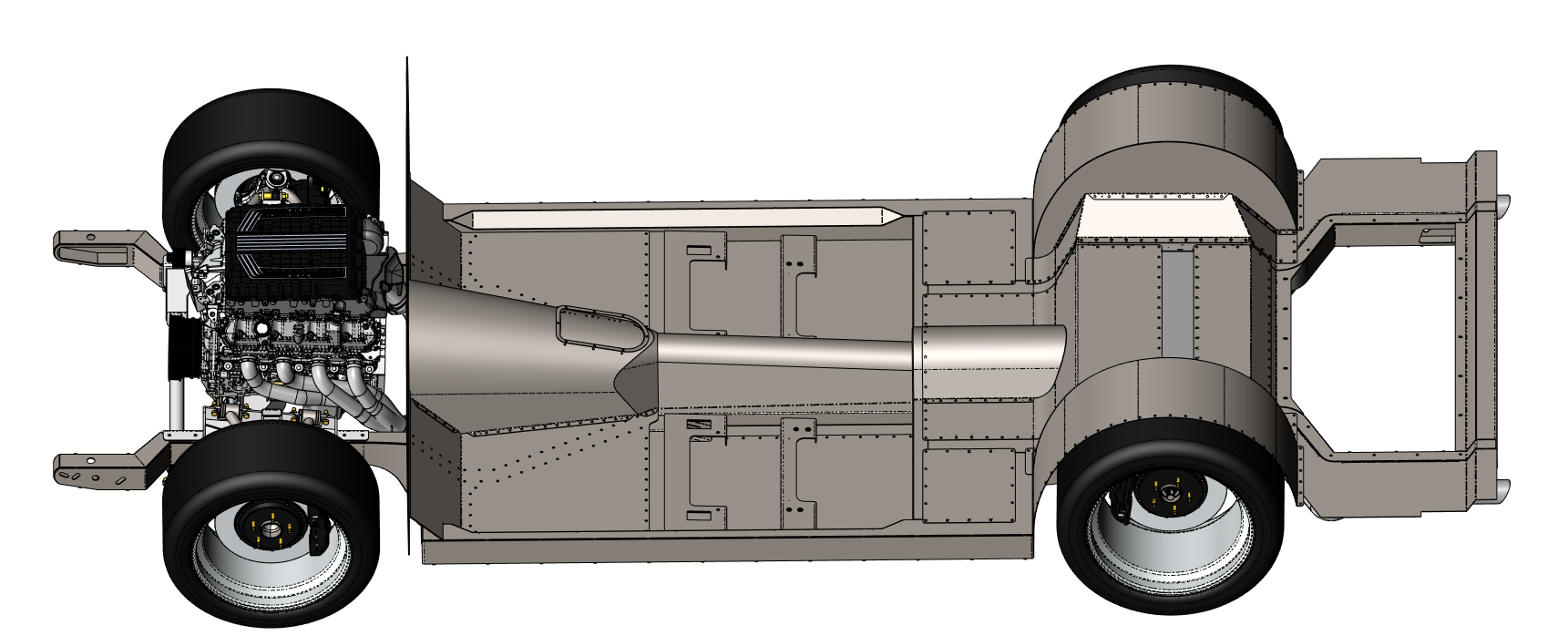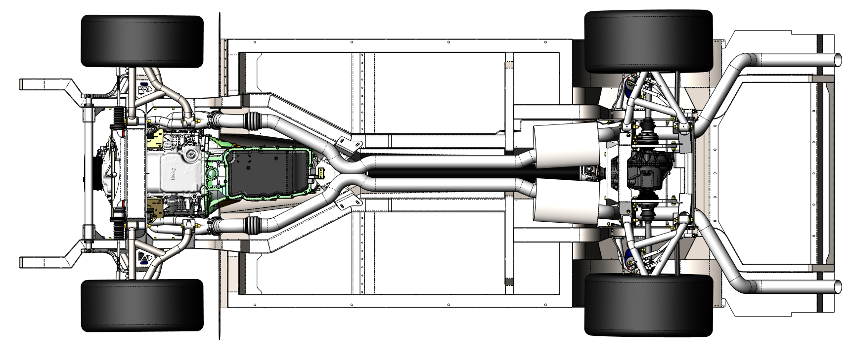 - Integrated transmission tunnel designed for a 10-speed automatic or T56 manual.